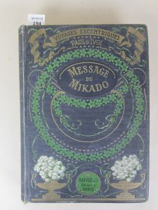 D'IVOI Paul. Message du Mikado. Paris chez Boivin , intérieur très frais Etat moyen , in-4. Illustré de 84 gravures in texte, 18 grandes compositions hors texte d'après les dessins de G.Conrad. Reliure Engel à la bradel, couverture illustrée ,...
