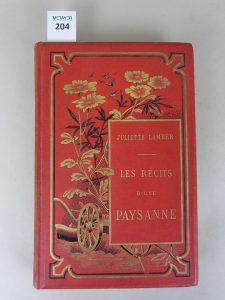 LAMBERT Juliette. Les récits d'une paysanne. Edition Jules Lemonyer. Grand in-8 , à Paris, 1885. Relié à la bradel, cartonnage rouge illustré , orné de dorure , trois tranches dorées, dos lisse avec ornements dorés. Illustré par G.Fraipont,...