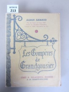 ARIBAUD Alban. Les compères de Grandgousier. Edition Delayance , in-12 1936. Ex libris de Gabriel Parent, illustré par 18 dessins de l'auteur. Petit manque angulaire au premier plat.