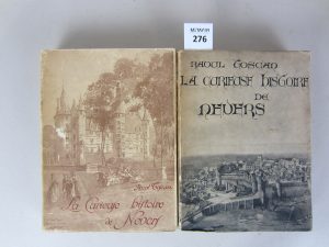 TOSCAN Raoul. La curieuse histoire de Nevers. En 2 volumes. Edition courante, partiellement non coupé, envoi de Toscan à Charles J.Millon dans les 2 exemplaires, premier plat du second volume tend à se déchirer, bulletin de souscription dans le...