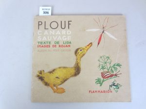 LIDA. Plouf canard sauvage, illustré par Rojan , Edition Flammarion. 1947. In-8 oblong. Couverture cartonnée souple illustrée.