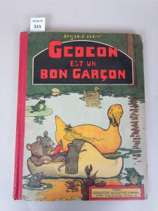 RABIER Benjamin. Gédéon est un bon garçon. Paris. Edition librairie Gamier frères. 1934.In-4 oblong. Cartonnage rigide d'éditeur, le bord des plats et la couverture sont abimés, pages poussiéreuses, ,coins abimés.