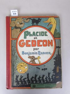 RABIER Benjamin. Placide et Gédéon. Paris. Edition librairie Gamier frères. 1928. In-4. Cartonnage rigide, petites déchirures au bas de quelques pages, pages légèrement salie, 1er plat illustré, dos salie.