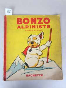 STUDDY. Bonzo Alpiniste. Édition hachette. 1937. In-folio. Dos déchiré intérieur très frais. Les angles sont gondolés.