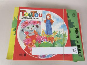 Un ensemble de livres Pépin La bulle , Kiri le clown , toutou journal, magazines Ortf, des années 60/70 album brochés.