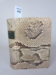 ANQUETIL Georges. Satan conduit le bal, roman pamphlétaire et philosophique des mœurs du temps. Edition Georges Anquetil, 1925 in-12. Tranche supérieur dorée sur témoin , à toutes marges, reliure en python, couverture conservée , titre dorée...