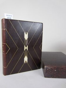 BALZAC Honoré de. Le lys dans la vallée. In-8. Très bon état. Reliure signé par Annie Cotton en plein maroquin mosaïqué doublé d'un papier marbré. , dos lisse , filets dorées géométrique. N°154/ 1105, un des 320 sur japon nuageux...
