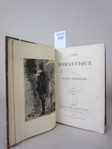 BAUDELAIRE Charles. L'art romantique. Paris , édition Michel Lévy. 1868. In-12. Edition originale , lettre sur Baudelaire jointe , frontispice d'Alfred Brillant. Demi reliure en cuir marron , mors légèrement frottés.