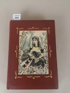 supérieure dorée , doublure intérieure en tissu rouge , reliure signé Alba Moor. Dans un étui bordé., gravures sur bois coloriées par Beaufumé , petits frottements en haut et en bas de l'étui Un des 950 exemplaires sur vélin Lana n°490/990 , très bel exemplaire.