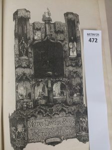 HUGO Victor. Notre dame de Paris. Eugène Hugues édition, sans date. Reliure demi cuir rouge , plat marbré rouge , dos à 5 nerfs, caissons ornés de fers dorés, titre doré , nouvelle édition illustrée. Très nombreuses illustrations.