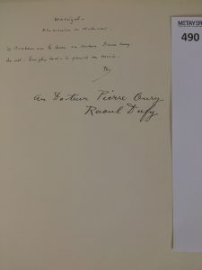 manuscrit en page de titre et un envoi de Raoul Dufy.