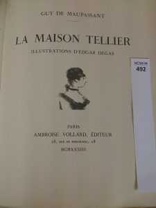 MAUPASSANT Guy de. La maison Tellier. Paris, Ambroise Vollard , 1934 in-4. Edition ornée de 16 composition d'Edgar Degas gravées sur bois dont une en couverture et deux hors textes , et de 19 compositions hors texte du même artiste gravées sur...