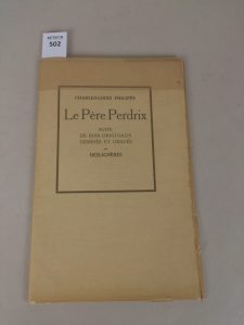 PHILIPPE Charles Louis. Le père Perdrix. Edition André Coq Paris. Edition originale. 1921. Etat neuf. Un des dix exemplaires sur vieux japon , n°2 imprimé pour l'éditeur accompagné d'un dessin original d'une suite des bois sur japon à lapésia...