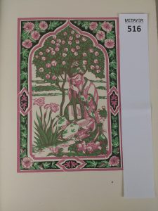 SAADI. Le jardin des roses et des fruits, traduit du persan. Edition Claude Aveline, 1927, in-4. Franz Toussaint, préface de la comtesse de Noailles, orné de dessins et de gravures d'André Deslignères. Reliure plein cuir rouge, 4 doubles nerfs,...