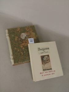 UNGUREN. Von Raphaël Kleweta. Petit in-8 carré. Edition limitée à 30 exemplaires. Quatre textes illustrés par six gravures sur cuivre ,, texte d'Arthur Rimbaud , Viking , Montesqieu entre autres. Nombreuses rousseurs, sous étui marbré , dos à...
