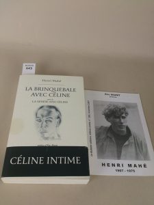 MAHE Henri. La brinquebale avec Céline , suivi de la genèse avec Céline. Edition écriture. Bon état. In-8. Contient un petit catalogue sur Mahé , préface d'Eric Mazet , tâche sur la couverture.