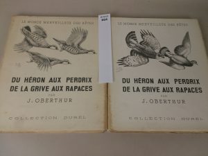 OBERTHUR. Le monde merveilleux des bêtes, du héron aux perdrix de la grive aux rapaces. Edition Durel 1954, bon état. 2 volumes, tome 1 légèrement insolé, petites rousseurs sur les 2 volumes.