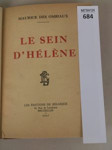 DES OMBIAUX Maurice. Le sein d'Hélène. Edition de Belgique., 1937, in-12. Couverture souple conservée , envoi de l'auteur à Curnonsky. Reliure demi cuir marron , plat marbré , dos à 4 nerfs un peu frottés, état très correct, tranche...