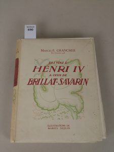GRANCHER Marcel. Des vins d'henri IV à ceux de Brillat Savarin. Illustrations de Marius de Jean , en feuilles sous couverture souple illustrée , envoi dédicacé de l'auteur édition champs fleuris.