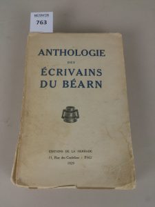 ANTHOLOGIES DES ECVRIVAINS DU BEARN. Edition de la Herrade , broché in-12. N°335/335 dédicace relié au début de l'ouvrage le 6 octobre 1929 , reliure salie , mors un peu déchirés.