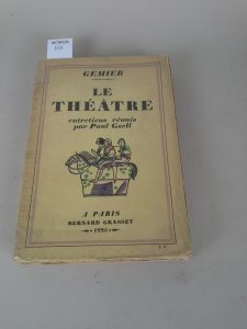 GEMIER. Le théâtre, entretiens réunis par Paul Gsell. Edition grasset, 1925. Envoi de Paul Gsell , couverture illustrée , in 8 , exemplaire du service presse.