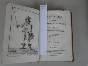 BEAUCHAMP Alphonse de. Histoire la conquête et des révolutions du Pérou. Paris chez Lenormant, 1808. In-8. Une gravure en frontispice de chaque volumes, 2 volumes, reliure en veau marbré , dos lisse orné de fleurons dorés, titre et tomaison sur...