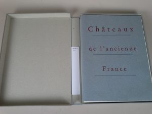 POGNON Edmond. Les chateaux de l'ancienne France. Edition du crédit lyonnais, 1957 , in-4. Etat neuf. Préface d'André Maurois. Reproduction (80 planches) de gravures de châteaux, en feuilles, en boite.