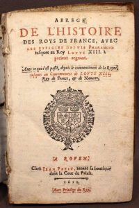Abrégé de l’histoire des Roys de France, avec les effigies depuis Pharamond jusques au Roy Louis Xiii. à présent regnant. Rouen, Jean Petit, 1611 ; in-12, parchemin ivoire souple à rabats, dos muet, traces de fermoirs, [Rel. de l'époque]. [4]