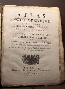 Bonne (Rigobert) et Desmarest (Nicolas). Atlas encyclopédique, contenant la géographie ancienne et quelques cartes sur la géographie du Moyen Âge, la géographie moderne, et les cartes relatives à la géographie physique. Paris, Hôtel de Thou,