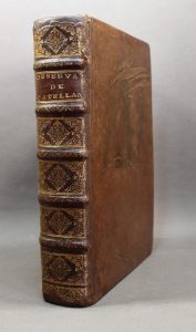in-4, basane granitée, dos à nerfs orné de motifs dorés, [Rel. de l’époque], restaurations aux coiffes. Mouillure claire en pied affectant les derniers ff., malgré tout bon exemplaire