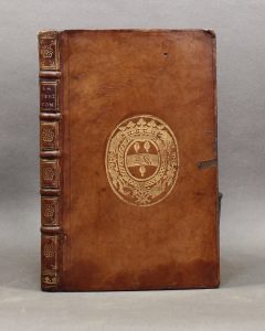 Delaunay (Robert). La Vérité fabuliste comédie avec un recueil de fables. Paris, Jean François Josse, 1732 ; in-12, veau fauve, filet à froid en encadrement sur les plats, armes dorées au centre, dos à nerfs orné de motifs dorés, pièce de