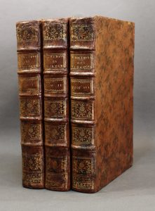 parue un an après l’originale et intégrant le supplément à la fin du deuxième volume. Petites galeries de vers, mais intérieur frais par ailleurs. Ined, 3358. Kress, B.916