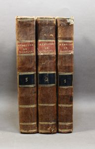 Sabatier (Raphaël-Bienvenu). De la médecine opératoire, ou des opérations de chirurgie qui se pratiquent le plus fréquemment. Paris, Didot le Jeune, 1796 ; 3 vol. in-8, demi-basane granitée, dos lisse, pièce de titre rouge et de tomaison noire,