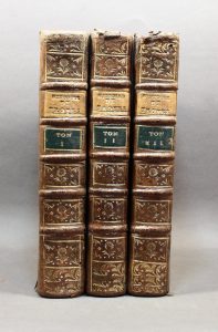 Courtalon-Delaistre. Topographie historique de la ville et du diocèse de Troyes. Troyes, Paris, Veuve Gobelet, Antoine Fournier, 1783-1784 ; 3 vol. in-8, basane marbrée, dos à nerfs orné de motifs dorés, pièce de titre chamois et de tomaison