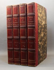 Dibdin (Th. Frognall). Voyage bibliographique, archéologique et pittoresque en France. Paris, Crapelet, 1825 ; 4 vol. in-4, demi-maroquin à long grains écarlate à coins, dos à nerfs doubles orné de caissons de filets dorés, non rogné, [Rel. de