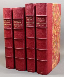 exemplaires numérotés sur papier vélin pur fil Lafuma-Navarre (n° 207). Préface et notes par Robert Mallet. En frontispice, reproduction d’une photo de Marc Allégret : André Gide et Paul Valéry à Paris en 1927.— Joint : • Gide (André), Claudel (Paul). Correspondance, 1899-1926. Préface et notes par Robert Mallet. Paris, Gallimard, 1949 ; in-8, même reliure. Édition originale. L’un des 350 exemplaires numérotés sur papier vélin pur fil Lafuma-Navarre. • Rivière (Jacques), Alain-Fournier. Correspondance, 1905-1914. Paris, Gallimard, 1926 ; 2 vol. (sur 4) in-8, même reliure. Édition originale. L’un des 100 exemplaires numérotés sur papier vergé Lafuma-Navarre, réservés aux Bibliophiles de la Nouvelle Revue française