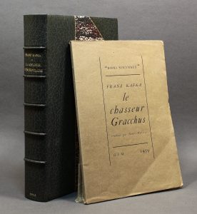 Exemplaire sur vieux papier du Japon Kafka (Franz). Le Chasseur Gracchus, traduit par Henri Parisot. Paris, Glm, 1939 ; in-12, broché, entièrement non coupé. Édition originale de la traduction française. L’un des 15 exemplaires numérotés du ...