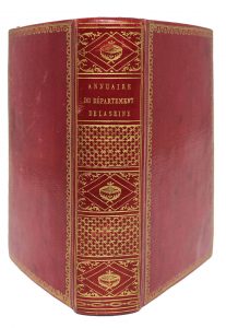 titre, 2 feuillets non chiffrés, xlvj pages (dont tableaux dépliants), 604 pages - Reliure de l'époque maroquin cerise - Plats orné d'une dentelle dorée - Dos lisse richement orné et titré or (légers frottements et 3 petits trous de vers aux mors) - Coupes légèrement frottées - Dentelle dorée à l'intérieur des plats - Gardes vertes - Bon exemplaire en édition originale peu courante.