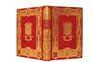 rose soutenu (signée de Lenègre, plaque de Liebherre) ornée des armes de Reims encadrées d'un riche décor doré aux 2 plats - Dos lisse orné à l'identique et titré et tomé or (infimes frottements) - Roulette dorée à l'intérieur des plats - Gardes blanches moirées (légèrement salies) - Tranches dorées - Bel exemplaire sur carré vergé (tirage total à 375 exemplaires). Le Lion” maroquin
