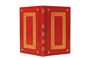 cerise - Plats encadrés de filets frappés à froid, de fleurons et d'un encadrement doré aux centre (signée Trautz-Bauzonnet) - Mors partiellement frottés avec début de fentes - Joli dos à nerfs orné, titré et daté or - Large dentelle dorée à l'intérieur des plats - Gardes blanches (légèrement salies de rouge) - Tranches dorées - Rare première édition tirée à 110 exemplaire de cet ouvrage ascétique attribué à Kempis, ici, le seul exemplaire tiré sur peau de vélin.