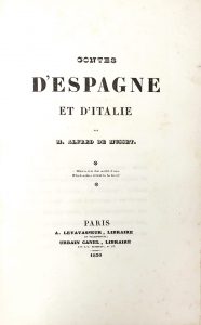 Musset (Alfred, de) - Contes d’Espagne et d’Italie - Paris ; Levavasseur, Urbain Canel, 1830 - 1 volume grand In-12° - 1 feuillet blanc, VIII, 238 pages, 1 feuillet blanc - Reliure de l'époque demi veau rose pâle glacé - Dos lisse orné et...