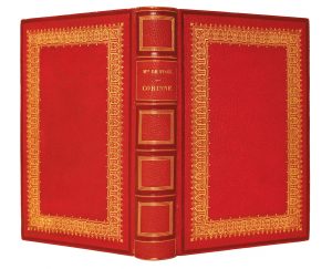 reliure de l'époque chagrin rose soutenu (signée de Lenègre) ornée d'un encadrement doré aux 2 plats - Dos à nerfs orné et titré or - Dentelle dorée à l'intérieur des plats - Gardes moirées (salies) - Tranches dorées - Bel exemplaire.
