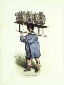couverture (V. Champs). 30 figures et nombreuses vignettes dans le texte, gravées sur bois d’après Henry Monnier, en premier tirage. EXEMPLAIRE CONTENANT 2 ÉTATS DES FIGURES, EN NOIR ET COLORIÉES , avec la bonne couverture jaune ornée de la gravure La Marchande de statuettes. Le prospectus de 4 pages a été ajouté à la fin du volume. De la bibliothèque Victor Mercier (I, 1937, n°387), avec son ex-libris gravé.
