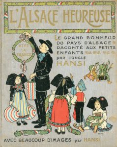 HANSI (Jean-Jacques Waltz, dit). L'Alsace heureuse. La Grande pitié du pays d'Alsace et son grand bonheur racontés aux petits enfants par l'oncle Hansi, avec quelques images tristes et beaucoup d'images gaies. P., H. Floury, (1919), 4°, 64 p.,...