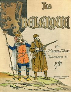 JOB.- CARTON DE WIART (Comte H.). La Belgique. Brux., Albert Dewit, 1928, 4°, pleine percaline grise polychrome de l'éditeur, 1 mors fendillé sur 3 cm, petite tache à 2 feuillets (reliure de Meersmans et Souze). Édition originale illustrée de...