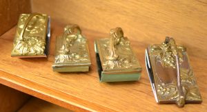 Tampon buvard.- Ensemble de quatre tampons buvard de style Art Nouveau en cuivre à motifs floraux. Format : env. 15 x 7 cm.