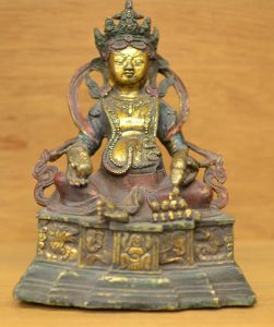 Asie.- Bouddha assis en métal doré. Hauteur : 19 cm.
