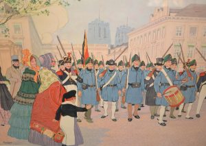 CASSIERS (Henri). "Royale belge" (1905). Chromolithographie, signée dans la planche et montée sous cadre en bois. Avant-projet de l'affiche réalisée pour la compagnie d'assurance "La Royale belge". Brux., Impr. De Rycker, 1905, dim. cadre : 80 x...