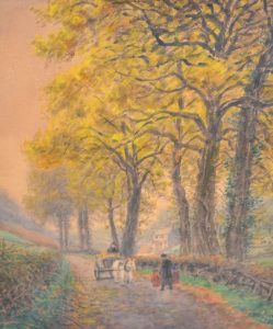 Alfred Hazledine (Grande-Bretagne, 1876 - Uccle, 1954) arrive à Bruxelles à l'âge de 15 ans. Prédilection pour les paysages. Style réaliste avec une touche luministe. Il travaille fréquemment au Pays de Galles dont il ramène des paysages d'automne et d'hiver.