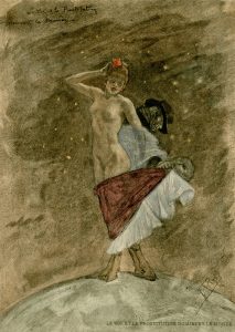 ROPS (Félicien). "Le Vol et la prostitution dominent le monde". Héliogravure en couleurs, titrée, signée dans la planche et montée sous cadre noir en bois. Dim. cadre : 32,5 x 26 cm ; sujet : 23 x 17 cm (Exsteens, 1069,2).